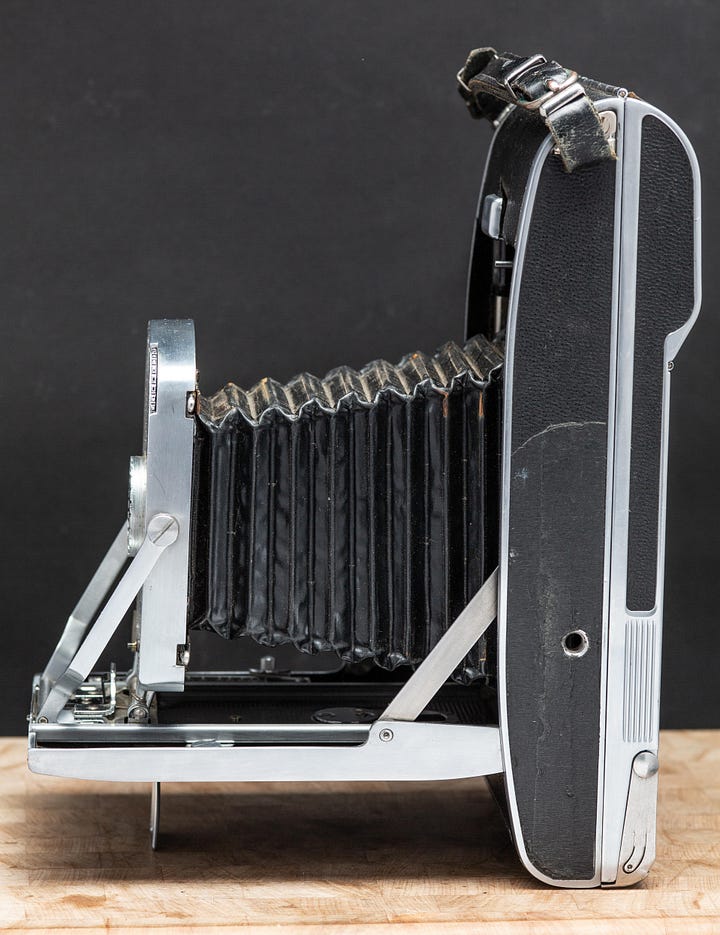 Continuing on with some of the fun and interesting cameras that have come through the shop, we turn our attention to a pioneering camera design, the Polaroid Land Camera. Dr. H. Edwin Land, created the original process for creating “Instant” photos. While the process was not exactly instant, it was much quicker than was normal at the time. The Polaroid process had the added benefit of not needing to take your film to the drug store for processing and printing.