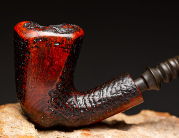 In my last posting about pipes, I mentioned two styles for the surface of the pipe, smooth and sandblasted. Both, are pretty much what you might expect with those names. Here, I will show you examples of “Rusticated” pipes.