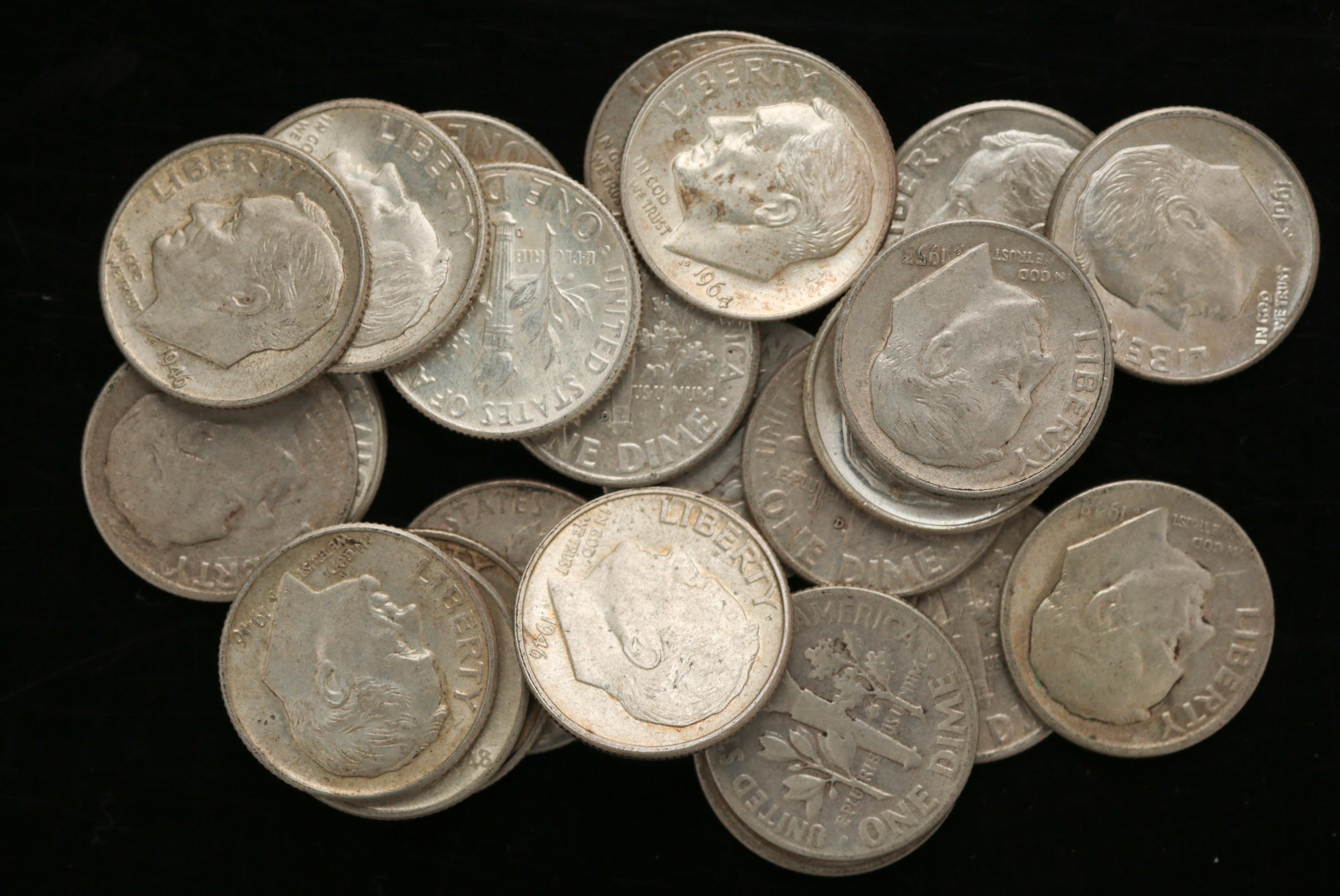 This collection of dimes has a face value of $2.50. They are dimes that are all from 1964 and before. This is significant because, after 1964, the U.S. Mint changed the composition of all silver coins to a much less valuable alloy. Coins from 1964, and before, contain 90% silver. Today, U.S. “Silver” coins are less than 40%. What this means, for these coins, is that the value of the silver in each coin is worth close to $1.50. There is little numismatic value for this collection of coins, so I am only concerned with showing that they are pre-1964 coins. I am not lookin to spend any significant amount of time posing, or arranging these coins. These coins took me much less than 60 seconds to shoot. But, the value of the coins is, not strictly speaking, the point os this post; the point is the perception of depth.