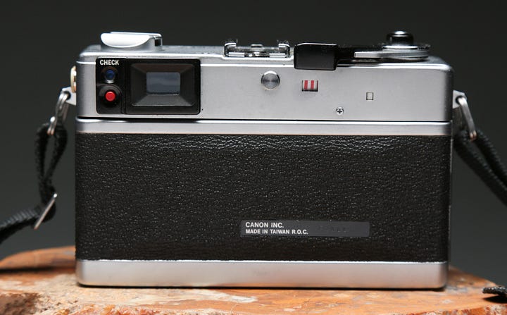 Introduced in 1972, this camera was somewhat of a marketing throwback for Canon. Canon, had been well into the Single Lens Reflex world for many years, and this camera is a fixed lens rangefinder. Yes, Canon did make rangefinders in the past, but most of the Japanese camera makers were moving away from rangefinders by the early 70’s. Still, Canon had success with this little beauty, selling 1.2 million, over the course of 10 years.