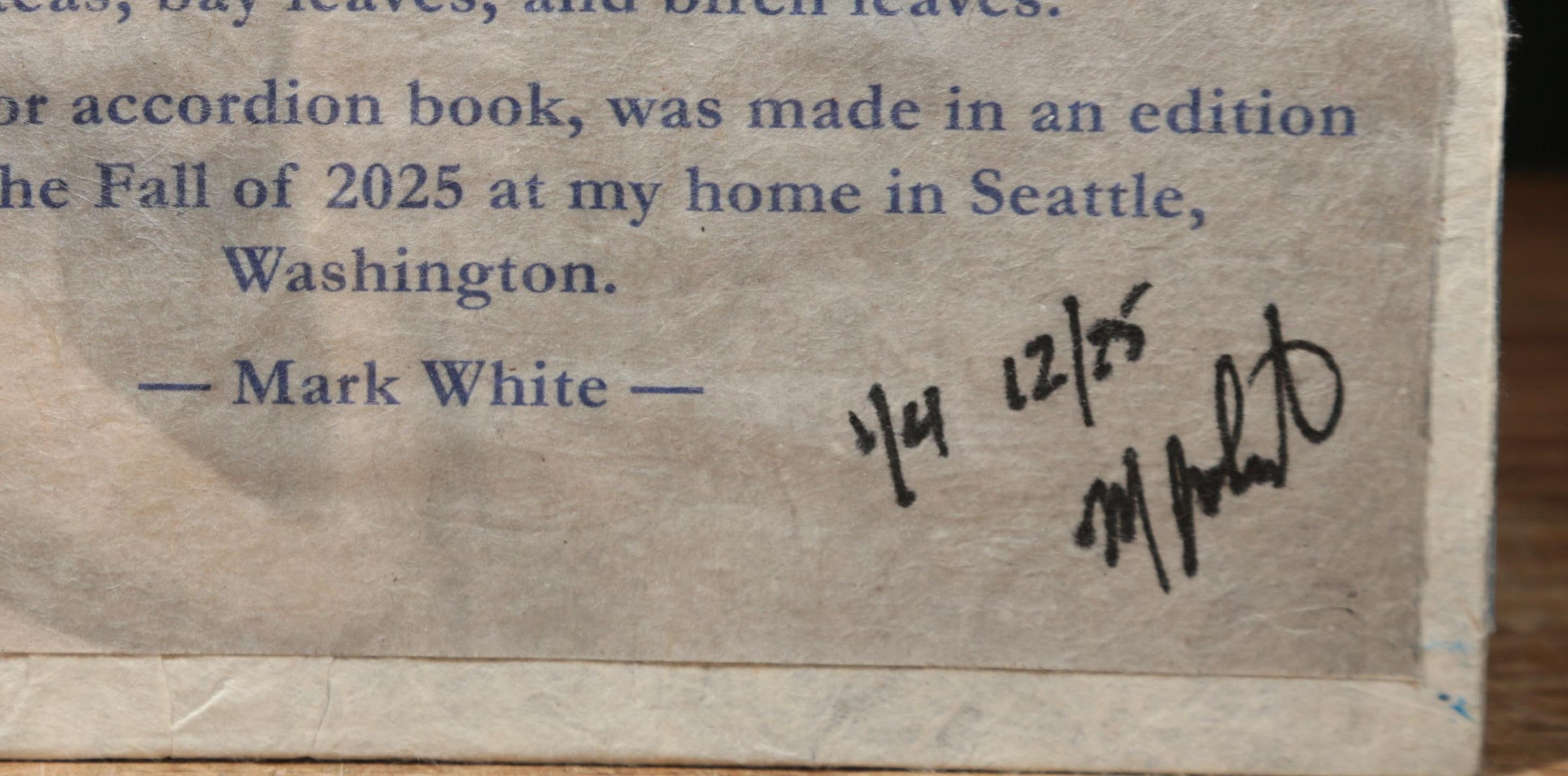 First, if you can, let you customer know that you are willing to give them a peak behind the scenes of how you made this unique work; Mark does that with a panel on the back of the zine, detailing what you are looking at, as well as the process that goes into the Cyanotype printing process.