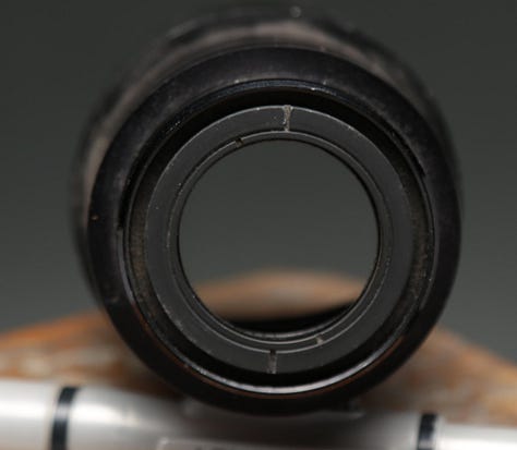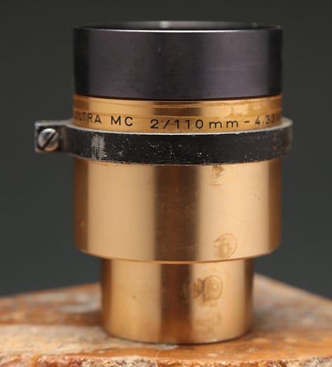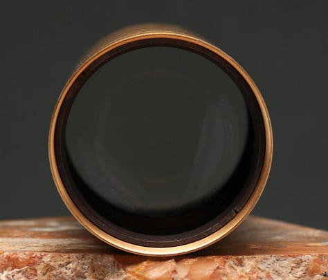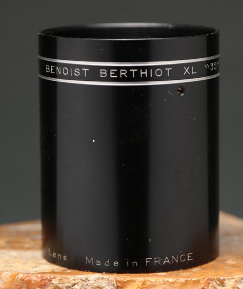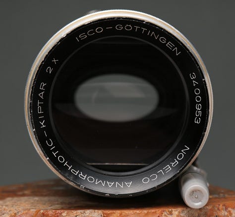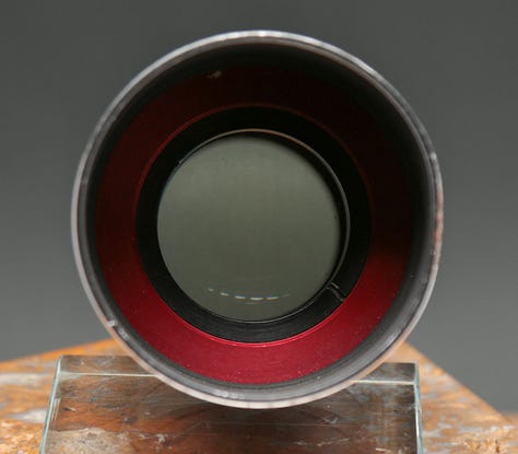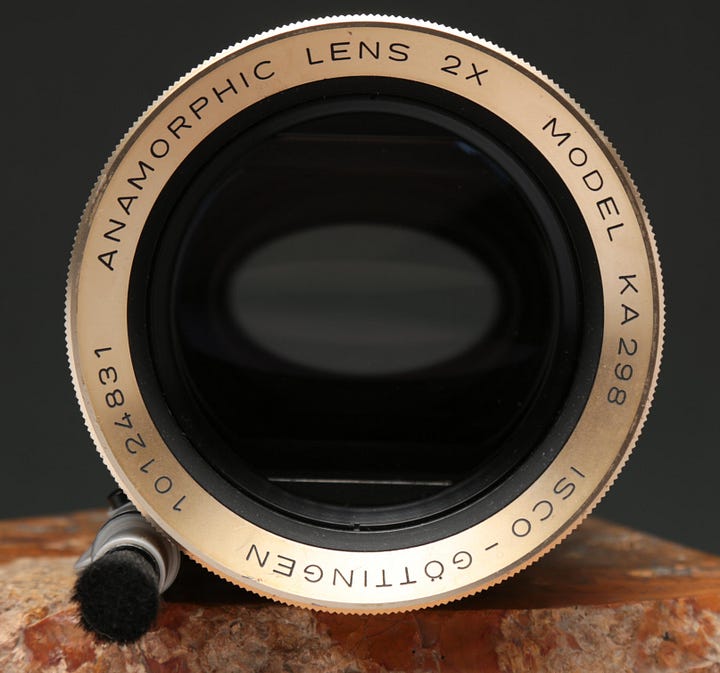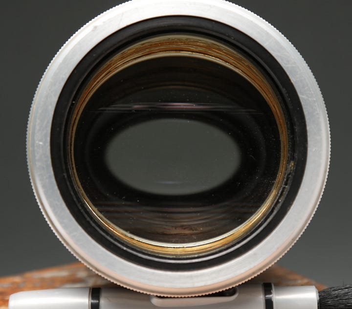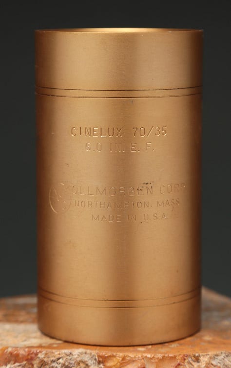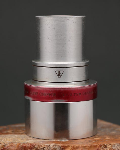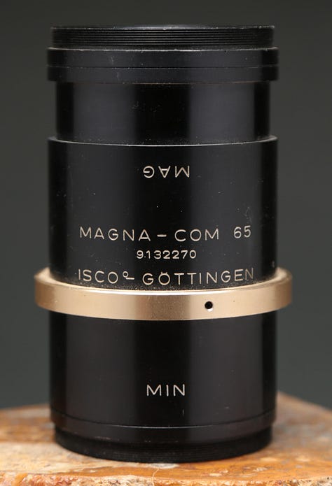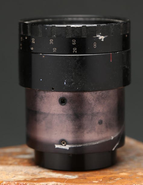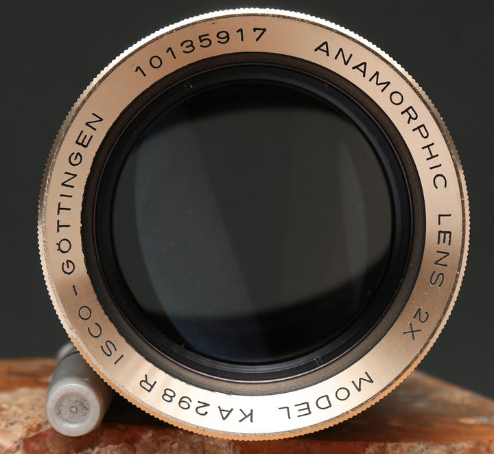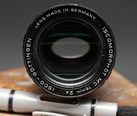 When I say, “Projection” lenses, I mean that these lenses are for movie projection systems: professional movie projection systems. This particular lens is from a German optics company, ISCO-Gottigen. They made optics for cameras before WWII, and primarily cinema lenses after the war.