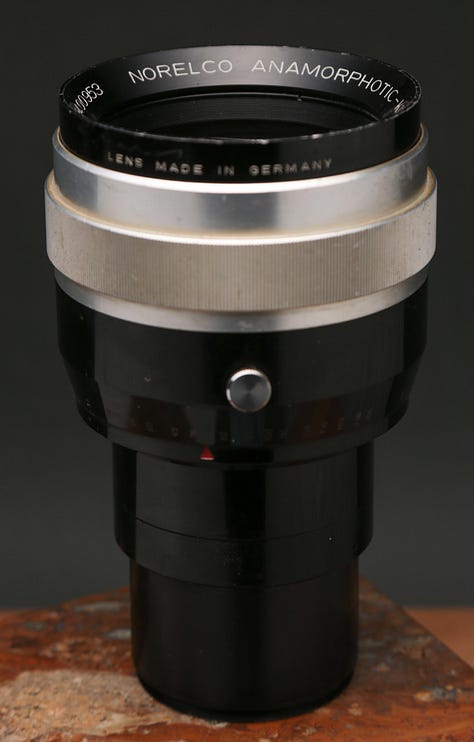 You will notice that these four lenses seem to have squashed lenses, this is because they are “Anamorphic” lenses. When shooting movies, an anamorphic lens keeps the center in focus, but drastically blows out the focus of just about everything else. There is also a tendency to squeeze the frame from top to bottom. When you think of a classic “Cinematic” look, it’s probably the effect of an anamorphic lens that you are thinking about. I can only imagine that an anamorphic projection lens is somehow necessary to get the most out of your film, if it was also shot with an anamorphic lens. To be honest, I am not well versed in the development and use of projection lenses.