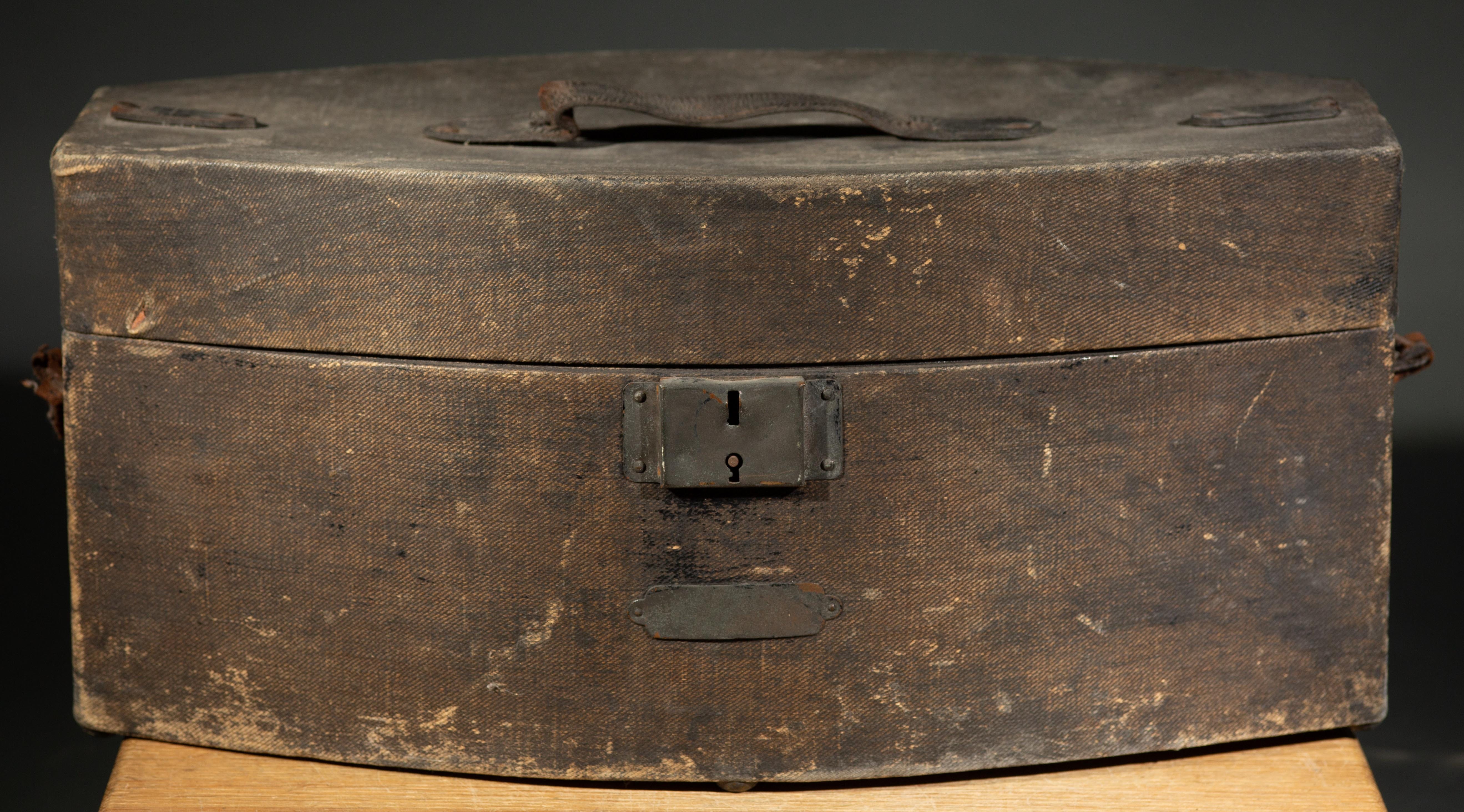 This, is a hatbox. Specifically, it is a hatbox for a naval officer in the U.S. Navy, around the time of the American Civil War. You will notice that the light that falls on the box is a hard light, and not the softened light that you typically see in my work; that is because there is no diffusion on the strobe, only the snoot. This harder light gives these pictures a much different character than what I usually get, and that’s the reason why I got the snoots.