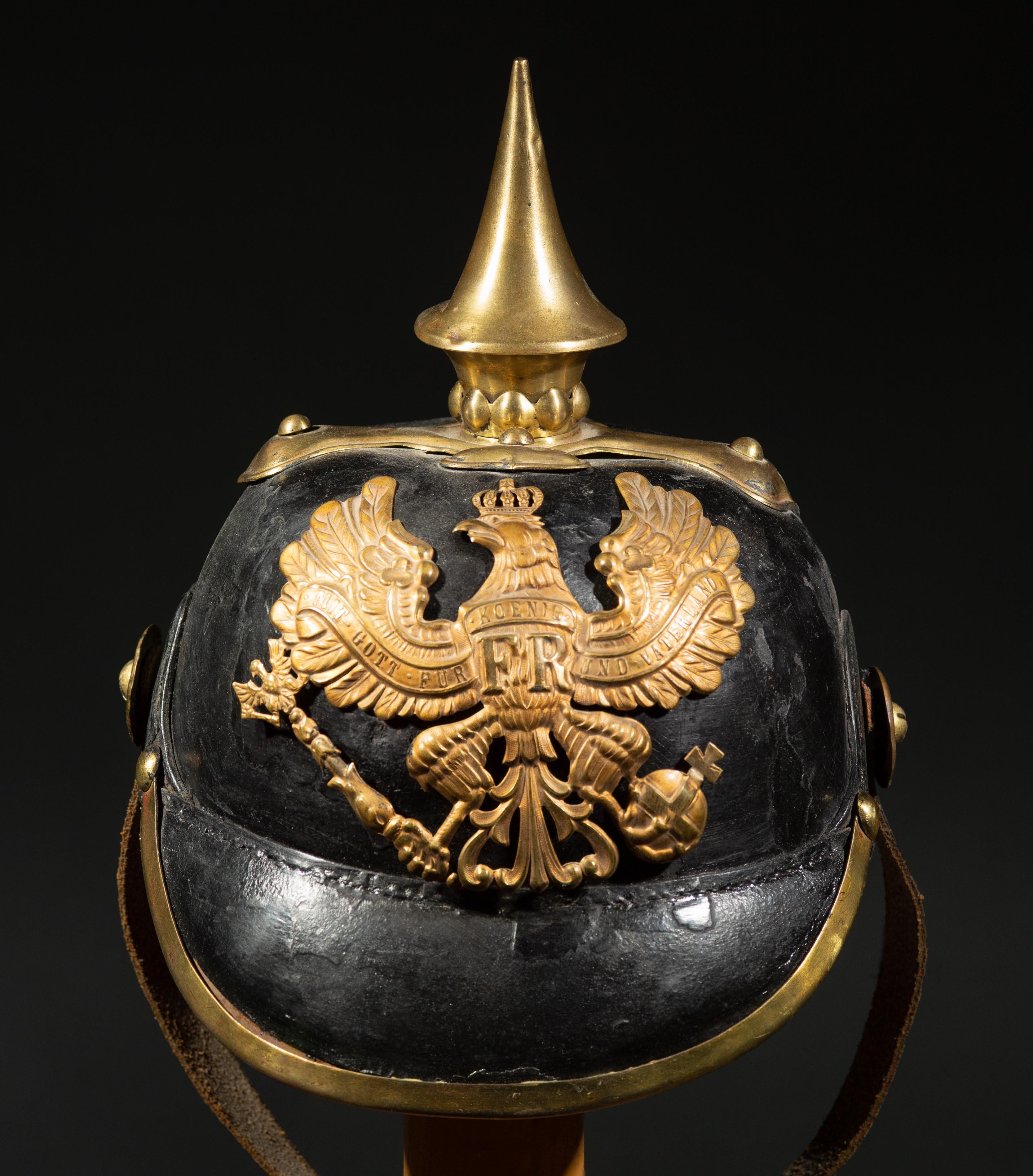 The Prussians, were the first to adopt this style of helmet, in 1842. It was originally a Russian design, but the Prussians put it into use two years before the Russians got theirs into service. Again, I couldn’t tell you if this is Prussian, or not, but it is typical of military helmets of German-speaking countries in the 19th Century.